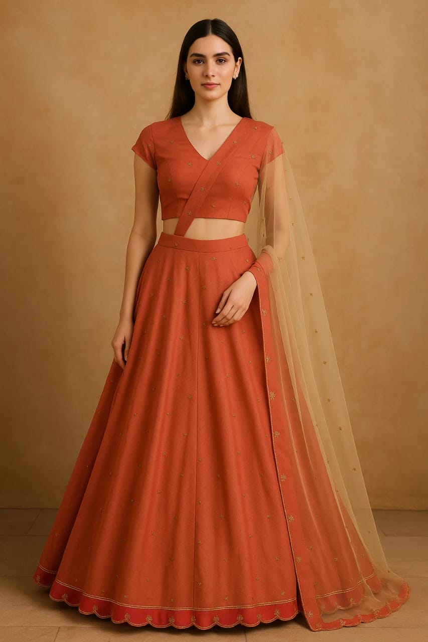 Perfect for bridal events, festive celebrations, or casual parties, this outfit is a statement of timeless beauty and modern sophistication. Crafted in high-quality georgette fabric, it offers graceful movement and a flattering fit.